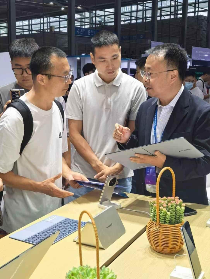 华为展区记者了解到,在本次展会中,华为重点展示了两款全新发布的鸿蒙电脑:HUAWEI MateBook Pro和HUAWEI MateBook Fold 非凡大师。HUAWEI MateBook Fold 非凡大师作为华为首款创新形态的折叠屏电脑,凭借全球最轻薄商用折叠设计和超大屏幕尺寸,突破了传统笔记本的行业边界。在鸿蒙操作系统的加持下,该电脑实现了流畅、智慧、高效的多元交互系统生态,让用户在超大屏幕沉浸式办公中,体验未来科技的智慧与高效,全面革新生产力体验。
