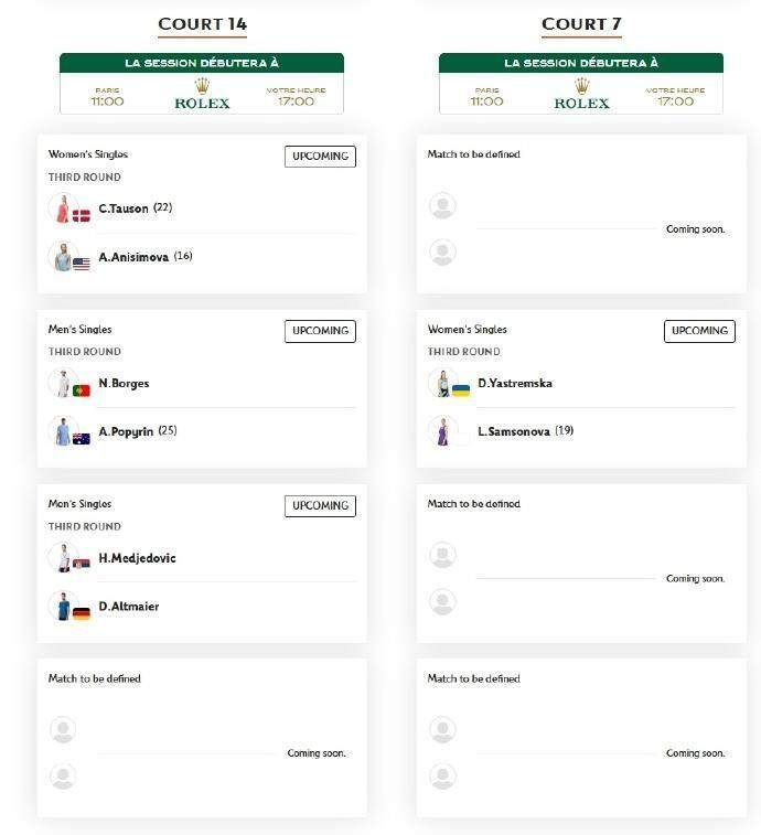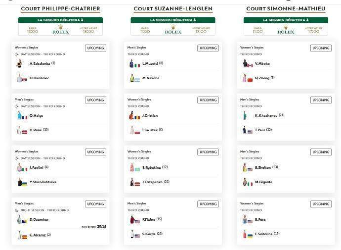 2025法国网球公开赛上半区第三轮今日(5月30日)开打,今天17时,郑钦文将面对势头正盛的加拿大18岁小将姆博科,冲击16强。后者自资格赛打起连胜5场且一盘未丢,首次参加大满贯赛事即打进32强。另外,萨巴伦卡、鲍里妮、斯瓦泰克出战,莱巴金娜对决奥斯塔彭科。