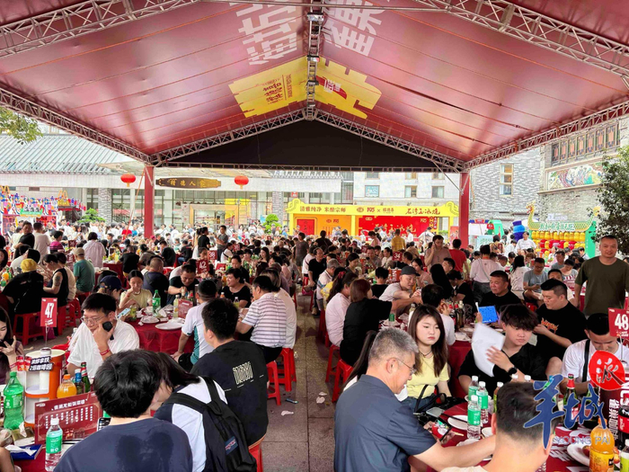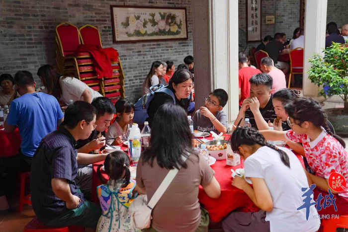 记者留意到,席间穿梭往来的身影,还有游客朋友们,作为广府地区端午期间的传统习俗,吃龙船饭过往都是村民们的“专属福利”,今年猎德龙舟饭向公众开放,单人席位原价138.8元。邱先生和女朋友就是其中两位,邱先生来自贵州,他评价道:“深度体验了一次广府端午,菜式十分丰盛,感觉不错!”