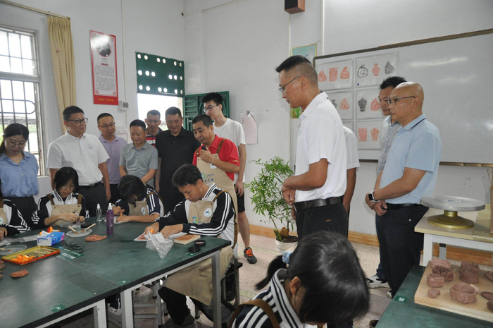 非遗美育课堂走进揭西县绵基中学“绵基中学现有学生600多名,生源主要覆盖周边六个行政村。”校长邱伟权介绍,近年来,在驻镇工作队、坪上镇、尖田村的共同支持下,绵基中学积极落实“五育”并举,提升素质教育水平,2023年起开设的陶艺课堂,广受学生欢迎,已经成为学校美育的一张亮丽名片。