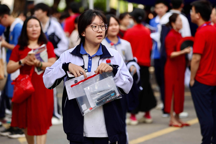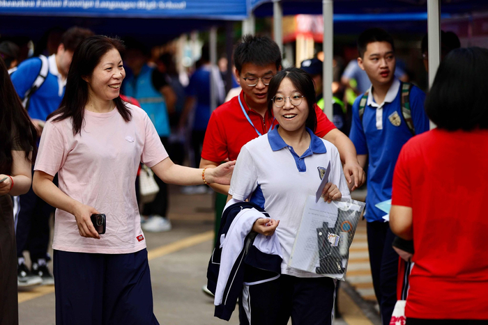 高考于6月7日至9日举行。今年,深圳参加高考的考生约7.5万人,全市在11个区共设76个考点。高考首日,羊城晚报记者来到深圳市西交利物浦外国语高级中学,校门口处,陆续有家长前来送考。他们冒着酷暑,即便已看不见孩子身影,却依然坚守,默默为奔赴考场的孩子们送上祝福。