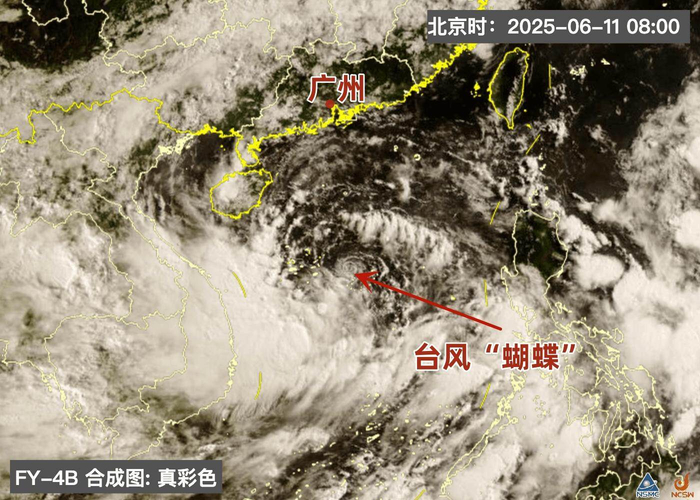 6月11日8时,台风“蝴蝶”卫星影像 国家卫星气象中心风云四号卫星天气应用平台截图后期走势或13日先登陆海南岛再登陆广东西部到广西南部沿海地区