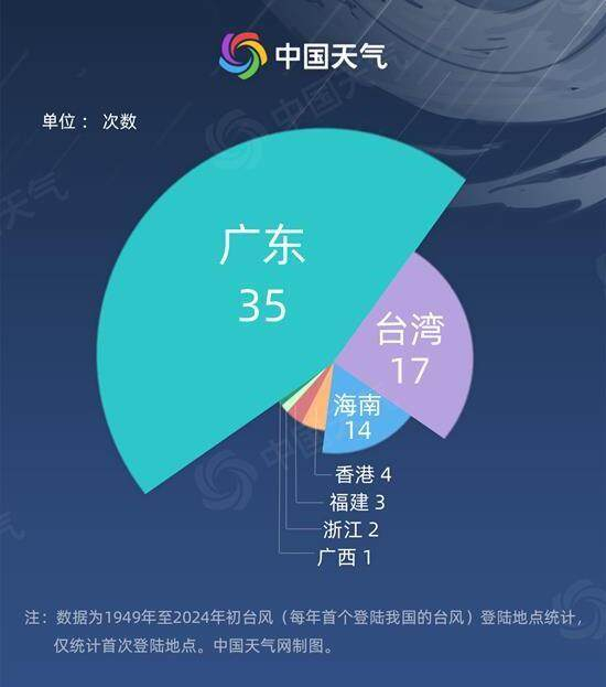 从初台风登陆地来看,北至浙江宁海,南达海南三亚,均能“捕捉”到它们的身影。不过,统计显示,初台风喜爱扎堆登陆广东、台湾和海南等地,其中广东最受青睐。