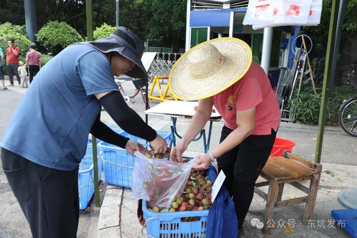 市民在采购荔枝为满足市民多样化需求,四季果园同步推出多元化服务:现场开放沉浸式采摘体验活动,市民可入园亲手采摘新鲜荔枝;开通线上线下订购渠道,设立东坑农业园南门农产品销售点,方便市民线下选购。