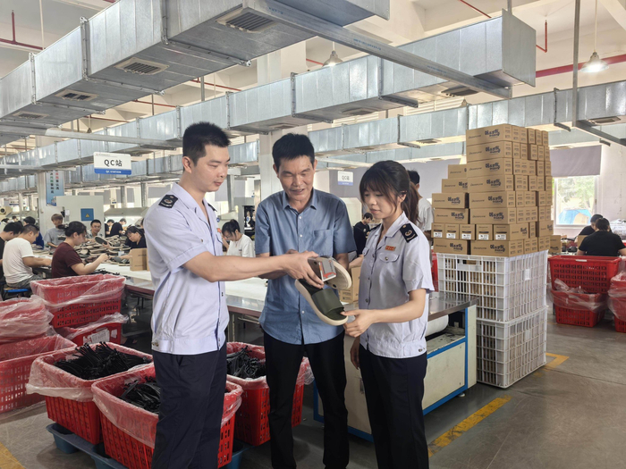 近日,国家税务总局揭阳市税务局组织开展“税联百业兴”调研采风活动,深入揭阳高新区广东圣路宝鞋业有限公司(以下简称“圣路宝鞋业”),聚焦揭阳服装制鞋产业发展现状与需求,探索税收助力传统特色产业转型升级新路径。