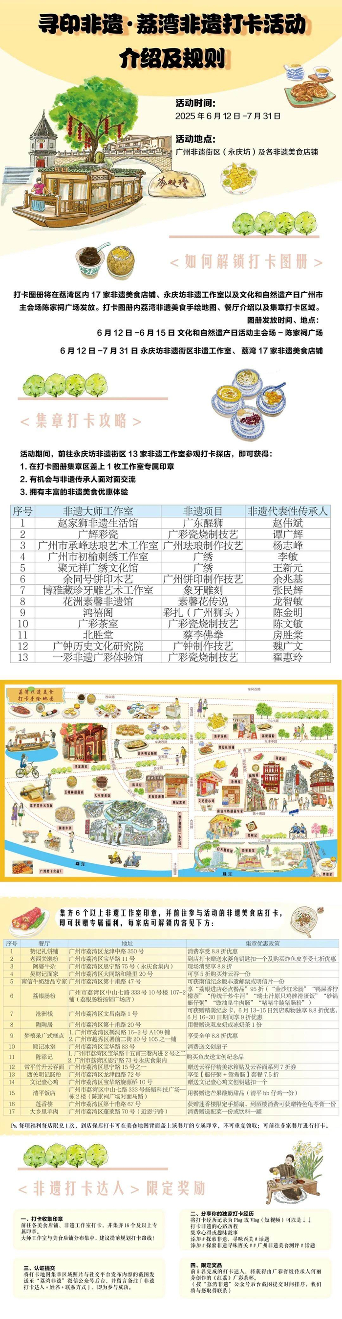简介:领取《寻印非遗图册》(内含地图及集章页)完成永庆坊非遗店铺打卡集章,集满6枚印章即可兑换非遗美食体验券。
