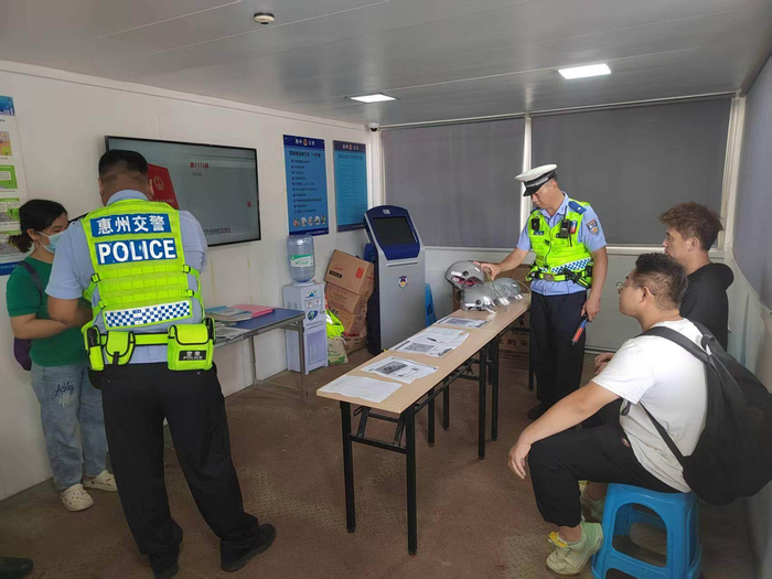 6月12日10时许,在惠州大道与市区三新南路交会路口,执勤交警一边疏导交通,一边对过往电动自行车驾乘人员开展佩戴安全头盔重要性等交通安全知识宣讲,并现场宣读《不戴安全头盔风险告知书》。针对部分群众骑乘电动自行车时未佩戴头盔的情况,执勤交警引导群众前往惠州交警文明交通宣传教育点,在集中观看交通安全事故警示教育片、作为志愿者参与体验式指挥交通后,赠送安全头盔,确保骑行者的头部得到妥善保护。