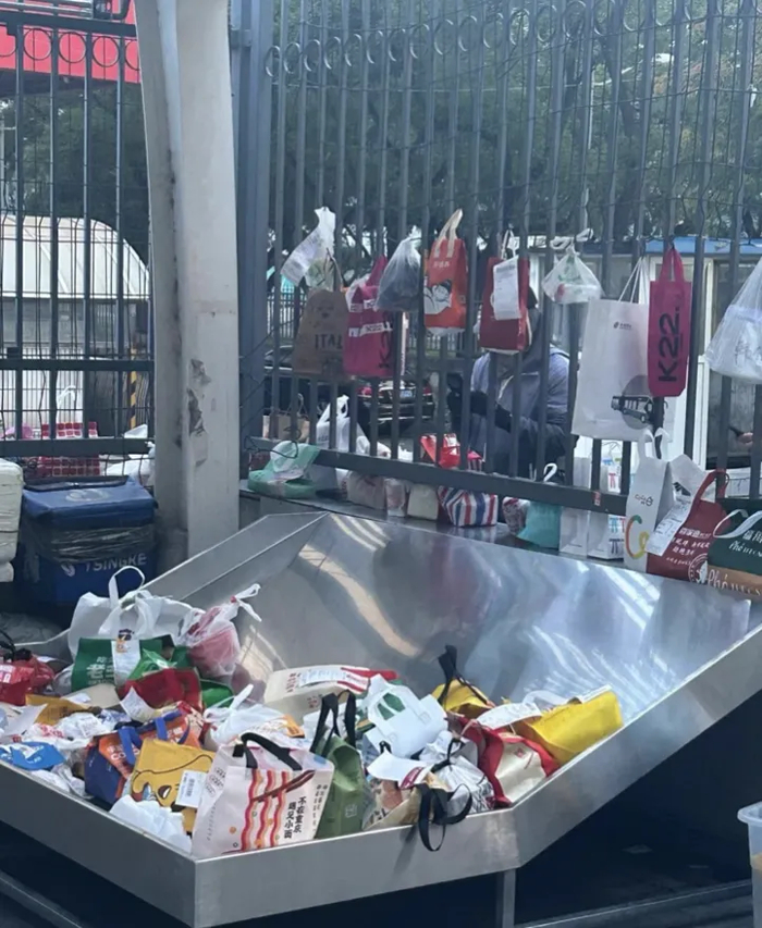 近日,有网友在社交平台上吐槽北京大学西南门的外卖桌,外形像“猪食槽”,外卖尤其是饮料要么被打翻,要么挂在栅栏上或者放在栅栏外拿不到,非常不方便。