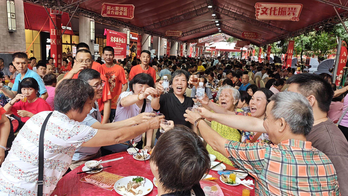 6月14日是文化和自然遗产日,广州市杨箕村举办“同心聚湾区,活力迎全运”龙船文化民俗大型系列活动。当天举办的“送龙宴”也为今夏杨箕龙船季画上圆满句号。