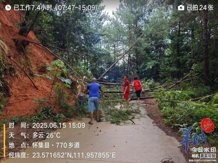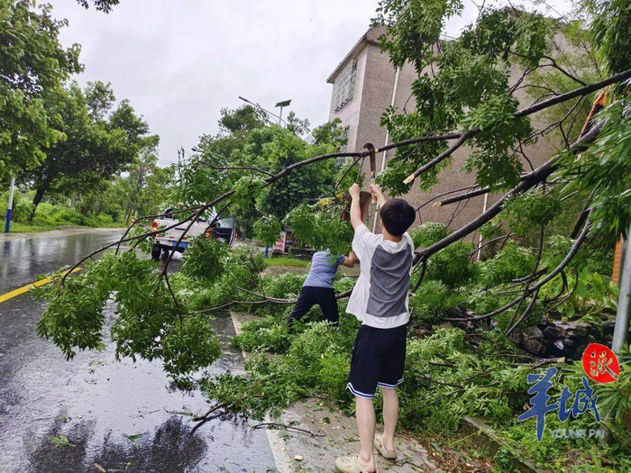 凤岗镇党员干部转移圩镇受灾群众交通公路部门派出工作人员、抢险机械等,到全县范围开展路面巡查;怀集县城管局派出绿化工作人员处置倒伏树木,清理沿江东路近新桥附近防洪堤断树枝。