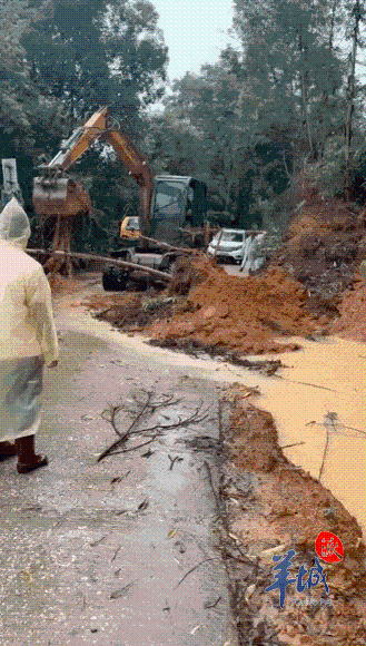 怀集县交通运输局、城管局工作人员清理树木、路面泥土。党员干部们对能够及时清理的倒伏树木、折断枝条等路障及时清理,并分片区派出机械清理路面恢复交通,对暂时无法处置的道路塌方等设置临时警示标志、做好安全防范。