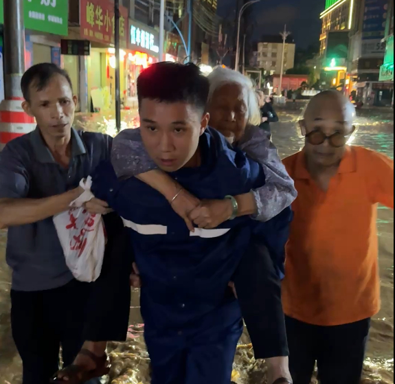 广东绥江怀集段遇建站来最大洪水,肇庆怀集因洪灾大部分城区被淹。国家东南区域应急救援中心筹备组广东机动队伍肇庆分队在通讯、交通、电力“三断”下,连夜用专业设备转移群众、清淤排涝。