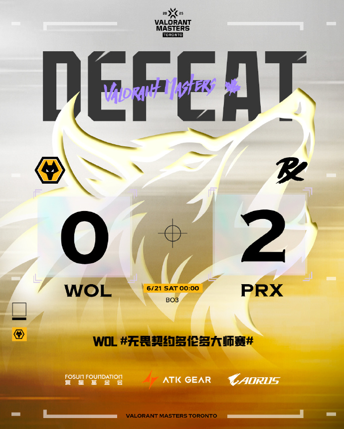 北京时间6月21日凌晨,在无畏契约多伦多大师赛胜者组决赛中,来自中国赛区的狼队(WOL)以0比2的比分不敌太平洋赛区劲旅PaperRex(PRX),遗憾跌入败者组。尽管遭遇失利,但狼队在本次赛事中展现出的实力和态度,已赢得全球电竞粉丝的喜爱。
