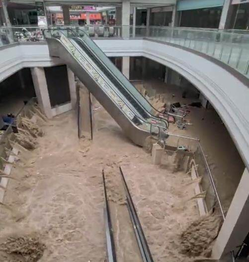 24日中午,事发商场多名商户向记者证实了此事,其中一位商户说:“短短几分钟洪水就涨上来了,来不及搬离货品,损失很大。”