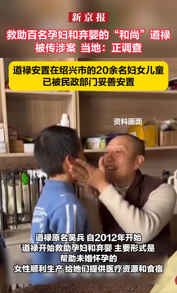 有网友爆料称,12年间救助几百名孕妇和弃婴的道禄因涉案被警方控制。6月24日,新京报记者从绍兴当地获悉,案件正在调查中,多个部门正在联合处理相关事宜,道禄安置在绍兴市的20余名妇女儿童已被民政部门妥善安置,专人照料。