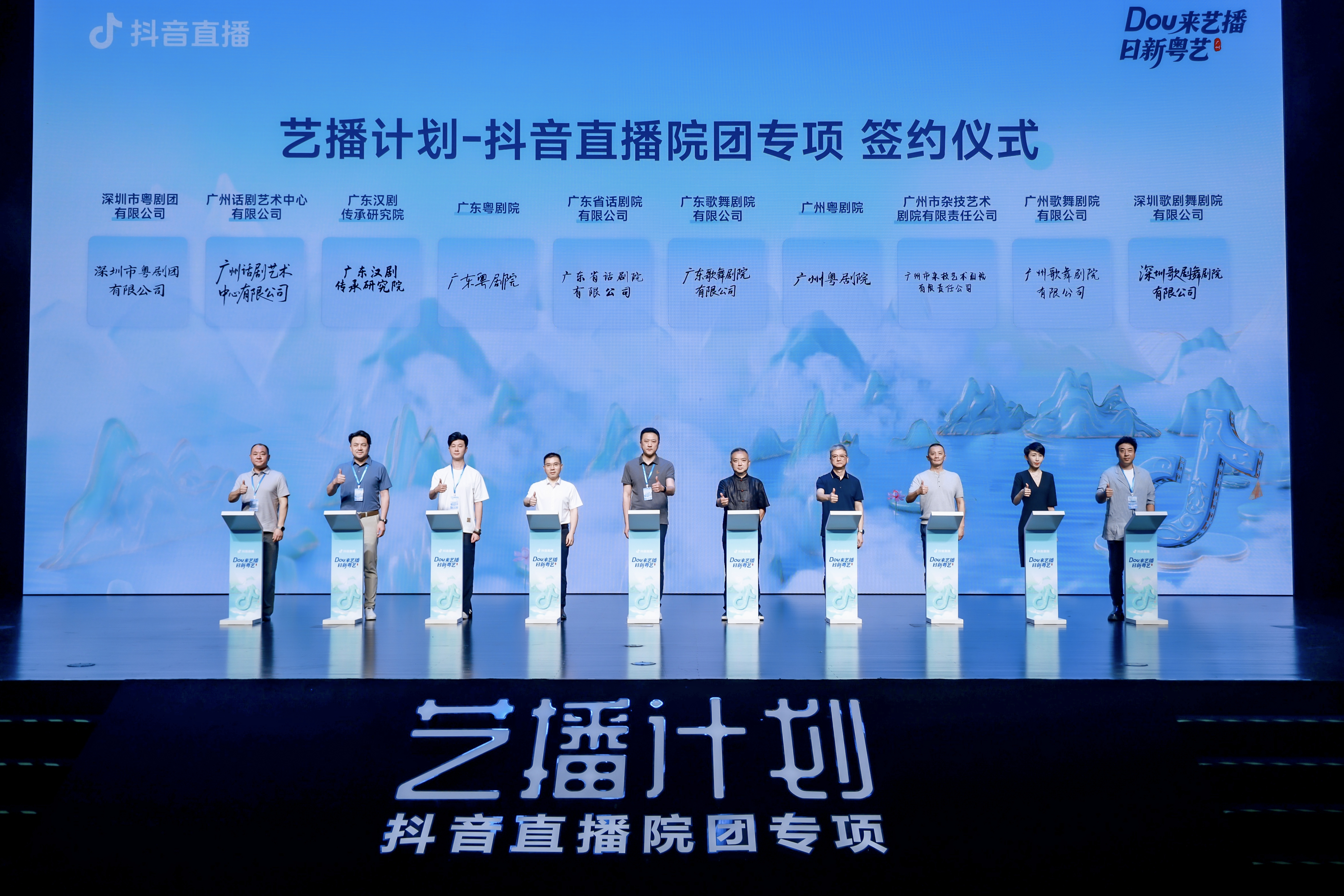 6月30日,来自广东省的37家文艺院团齐聚广州粤剧院,参与“DOU来艺播·日新粤艺”直播培训。该活动由广东省文化和旅游厅指导,中国演出行业协会、抖音直播主办,旨在助力广东文艺院团拓展线上经营模式。现场,广东粤剧院、广州话剧艺术中心有限公司、海丰县白字戏艺术传承中心等19家广东各级文艺院团正式签约加入“艺播计划-抖音直播院团专项”。