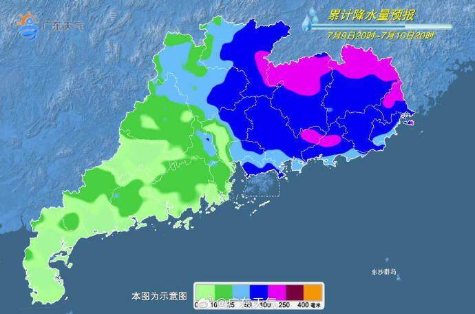 @广东天气 预计,10日-12日,受“丹娜丝”残余环流及西南季风影响,广东将有一次暴雨到大暴雨局地特大暴雨过程,高温有所缓解。