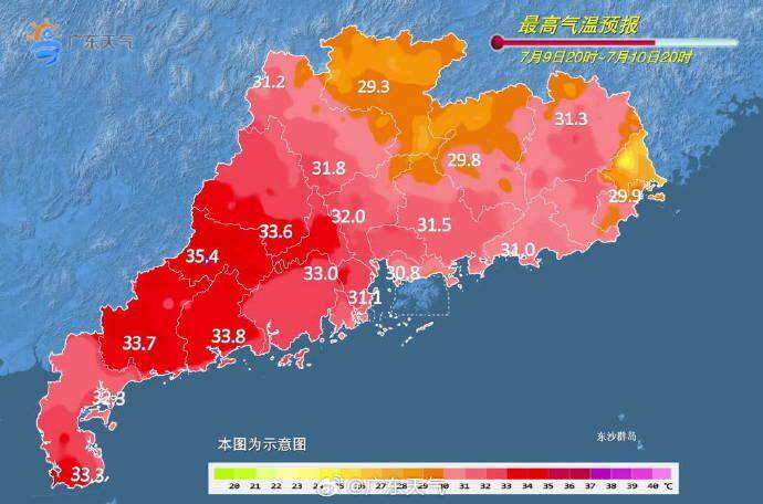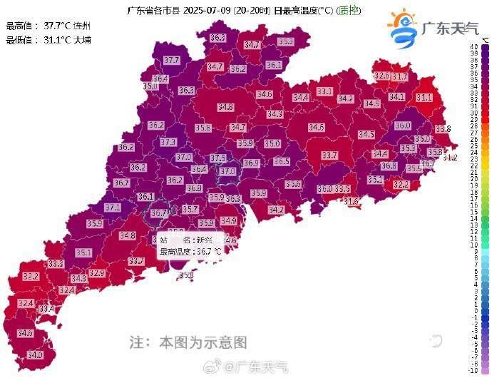 昨天(7月9日)广东热得像烤箱似的,不少市县的气温飙升到35℃+,连州以37.7℃登顶。