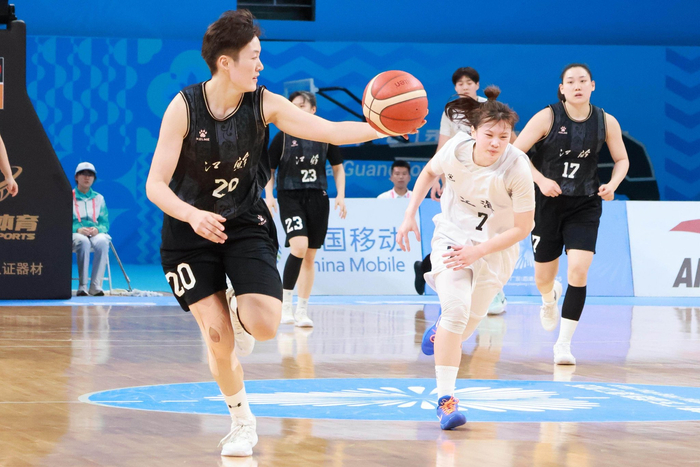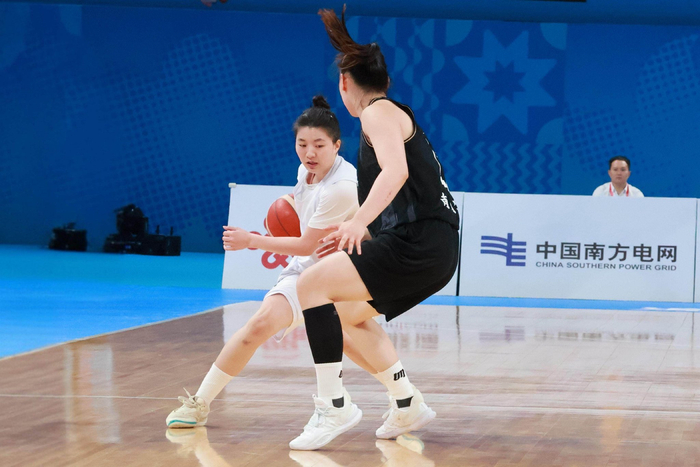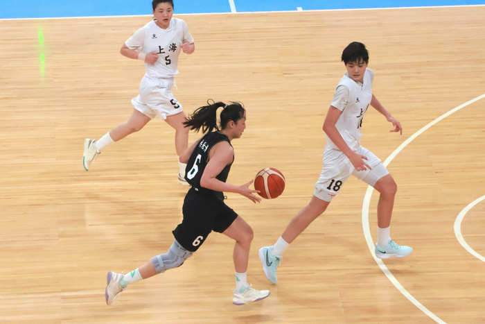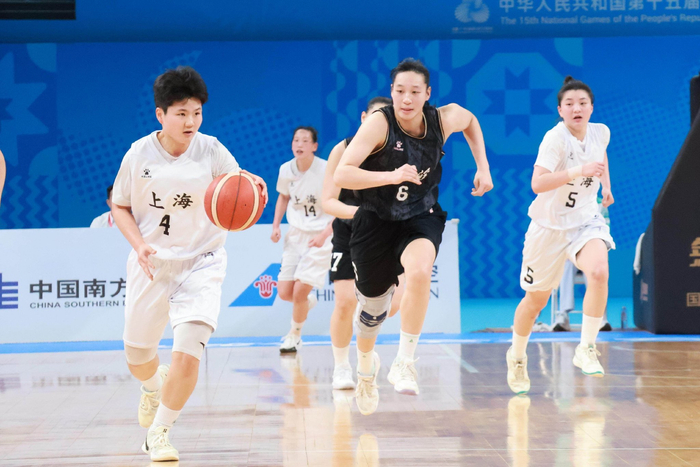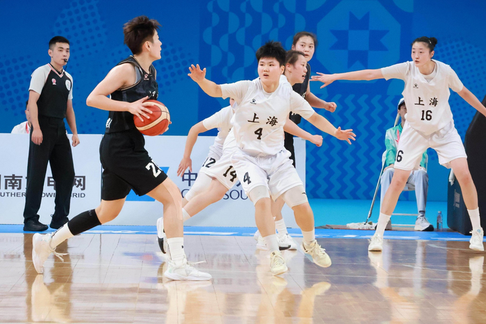 11月10日晚,第十五届全运会“深圳深体杯”篮球项目女子22岁以下组I组第四场小组赛在深圳湾体育中心激烈上演。身着黑色战袍的江苏南钢女子篮球队从开场便占据主动,凭借四节稳定出色的发挥,以87:63大比分击败身着白色球衣的上海队,收获了一场酣畅淋漓的胜利。