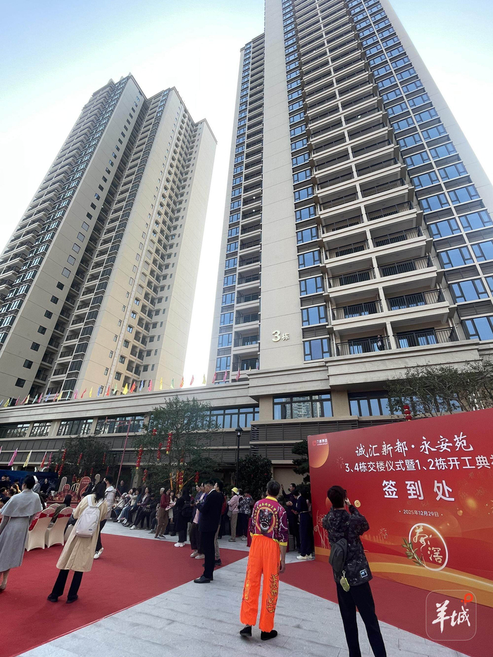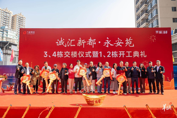 时隔一个月,广州市荔湾区茶滘城中村改造项目进度再更新。继11月月底有296套回迁安置房交付后,12月29日,茶滘城中村改造项目诚汇新都·永安苑(以下简称“永安苑”)5-3、5-4栋交楼仪式暨5-1、5-2栋开工典礼在永安苑举行。
