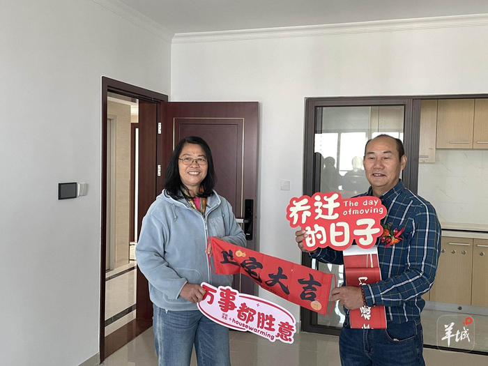 村民严健昇和太太喜提新居89岁的村民何本崇拄着拐杖参加回迁安置交付仪式,他和太太在当天验收了约70平方米的回迁安置房。此前,他们已验收了一套回迁安置房,并打算春节前入住。