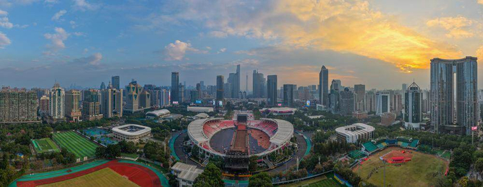 广东奥林匹克体育中心。黎裕衡 摄采风活动从南方绿宝石—华南国家植物园出发,一路穿行于火炉山森林公园的葱翠、天河湿地公园的清韵、车陂涌碧道的幽静、广东奥林匹克体育中心体育场的动感、天河体育中心的活力以及花城广场的繁华,通过镜头对日间晴岚、鸟语花香、落日余晖、夜空星辉及人景和谐的捕捉,生动展现出“山水城相融、日夜皆风景”的城市画卷。