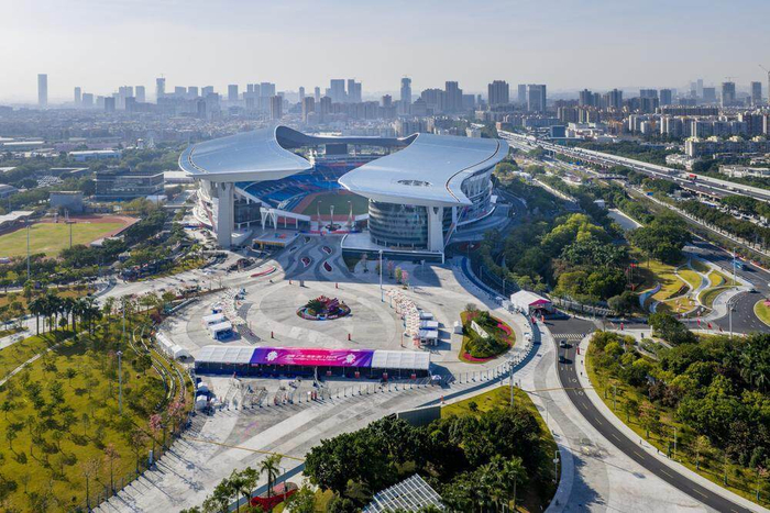 车陂涌。唐谭敏 摄广东奥林匹克体育中心体育场作为十五运会开幕式场地,是路线中的重要节点。奥体中心在保留大型综合体育场功能的基础上,通过隔热、通风、遮阳等方式,完成了一系列绿色低碳改造,新建的智能跑道、林下活动空间和大面积开放绿地及奥林匹克体育公园,为市民提供全天候、多层次的全民健身场景,实现了“赛事场馆向市民公园的转化”。