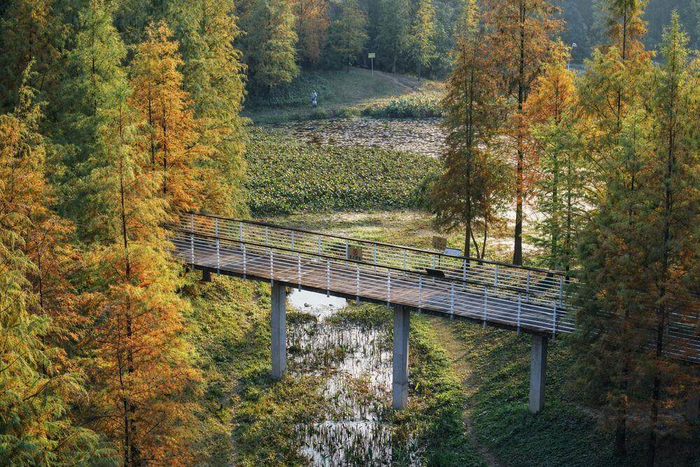 火炉山森林公园。陈志强 摄沿路线向东南方向延伸,天河湿地公园与车陂涌碧道共同勾勒出“水清岸绿、人水相亲”的生态水系画卷。天河湿地公园是广州市首个按照“海绵城市”理念试点建设的标志性生态景观,分为百花谷健身区、新塘水库观光区、生态幽谷区等功能区域,通过花谷景观、花园绿道、亲水栈道等系统设计,构建了可蓄、可渗、可净的“城市绿肺+海绵体”,成为市民露营、漫步的热门目的地。