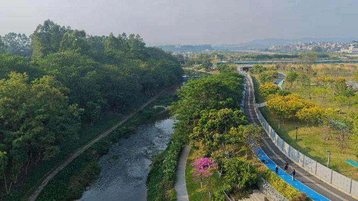 天河湿地公园。华宁 摄车陂涌则是天河区水环境治理转型升级的缩影,这条曾经的黑臭水体,经过系统治理与持续优化,如今已成为两岸绿树成荫、白鹭栖息的城市生态水廊道,入选广州市首批美丽河湖和广东省幸福河湖建设项目名单。依托车陂涌碧道建设形成的慢行系统及车陂涌边新建成的科韵公园(一期),市民可在此跑步、骑行、休闲游憩,在“看水、亲水、近水”过程中,自然融入绿色低碳生活方式。