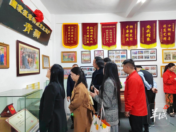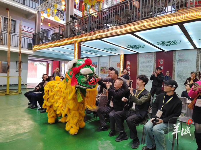 观看揭阳青狮表演接着,专家学者媒体朋友来到孙淑强狮艺武术馆,了解国家级非遗“揭阳青狮”的历史。据介绍,揭阳青狮,又称“青狮白目眉”“开口狮”,“狮头”前额突出,眼似铜铃,口型阔大,白眉醒目。青狮融合武术、杂技、舞蹈、美术、音乐等民间艺术,配以潮汕大锣鼓,舞姿造型独特,表演别具一格,距今已有300多年历史。2011年揭阳青狮被列入第三批国家级非物质文化遗产名录。