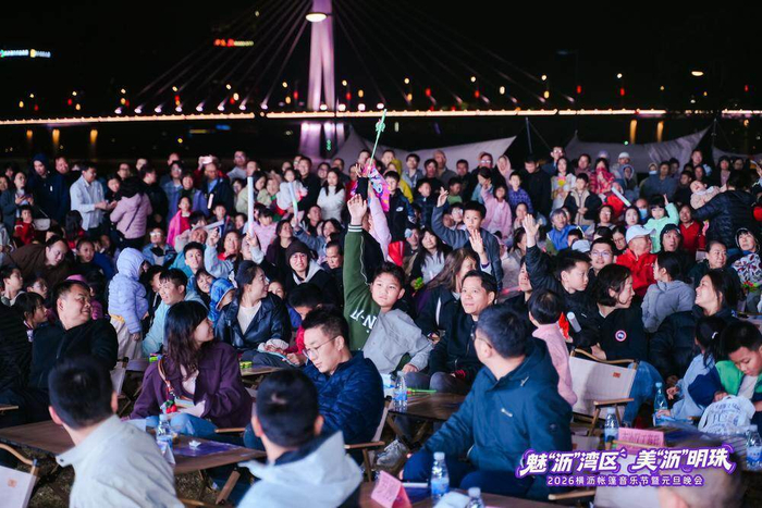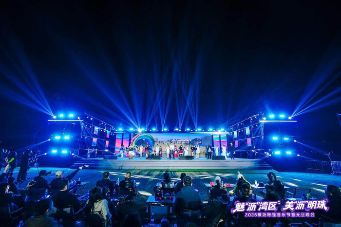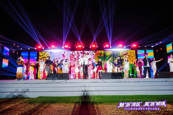 2026年1月1日晚,南沙横沥灵山岛尖举行“魅‘沥’湾区·美‘沥’明珠”帐篷音乐节暨元旦晚会。记者在现场看到,众多市民游客聚集于此,在珠江入海处的晚风中观看演出、参与市集活动。