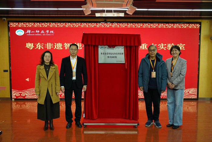 活动现场举行了“粤东非遗智能化传承与创新重点实验室”揭牌仪式,标志着韩山师范学院在非遗保护与研究领域迈入智能化、跨学科发展的新阶段。该实验室将致力于运用现代科技手段,推动岭南地区非物质文化遗产的系统性保护与创新性转化。