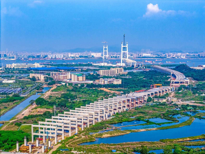 狮子洋大桥建设现场交通电力动脉竞速超级工程撑起湾区骨架