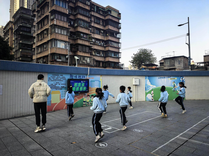 孩子们围在操场大屏幕前,排队“刷脸”测跳绳、50米跑;课间十分钟,走廊边、地坛旁,学生对着AI体锻屏“打卡”运动,数据同步上传;体育老师手持平板,查看的不再是花名册,而是每个孩子的个性化运动“诊断报告”与提升“处方”……