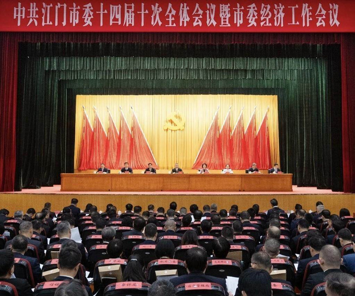 1月12日,中国共产党江门市第十四届委员会第十次全体会议暨市委经济工作会议召开。会议坚持以习近平新时代中国特色社会主义思想为指导,深入贯彻党的二十大和二十届历次全会以及中央经济工作会议精神,全面贯彻习近平总书记对广东系列重要讲话和重要指示精神,认真落实省委十三届八次全会暨省委经济工作会议精神,总结2025年工作,部署2026年工作,坚定信心、乘势而上,奋力开创江门高质量发展、现代化建设新局面。市委常委会主持会议。市委书记陈杰代表市委常委会作报告,市委副书记、市长吴晓晖就经济工作作具体部署。