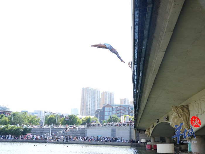 丝滑入水、垂直入水、“炸弹”入水,天津“梦之队”从不在意水花大小许多游客也不甘于止步岸边,希望“看到伯伯,理解伯伯,成为伯伯”,但自己站在离水6米高的桥上时才会意识到,这项运动并不像他们想象中那么简单。来自北京体育大学的杨同学身形健硕、熟识水性,但从没体验跳水,因此虽然专门换上泳裤,却仍在大家的围观下几次踱步,而后走下了桥。