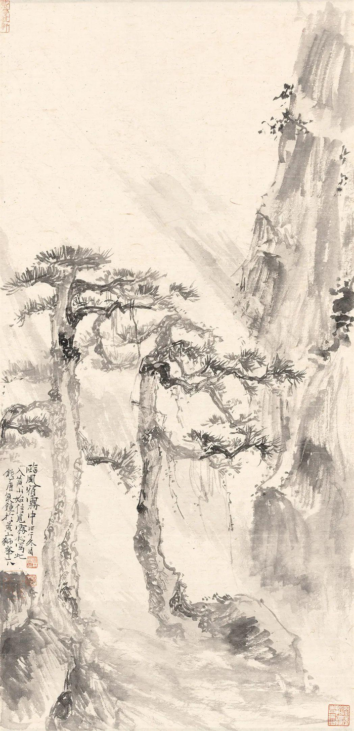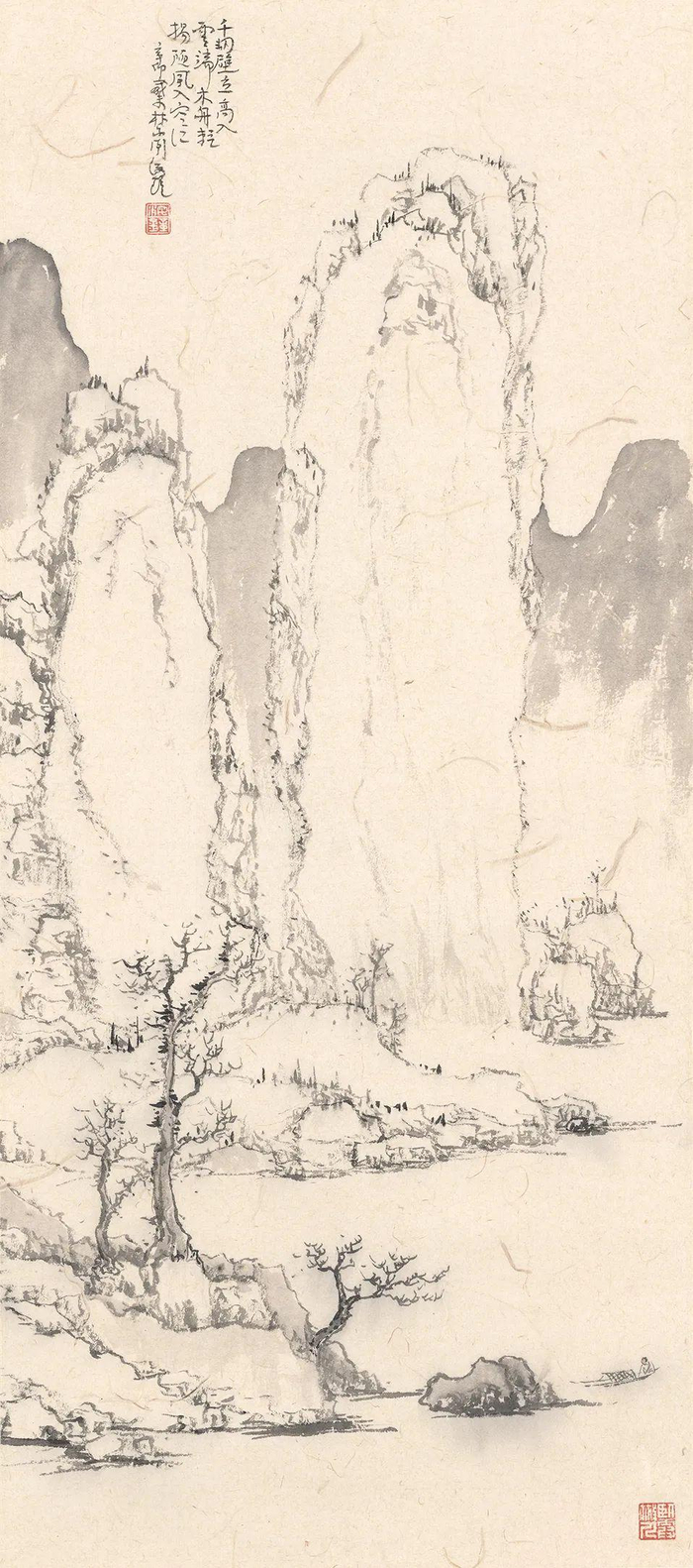 《笔法记》中云:“水晕墨章,兴吾唐代”,其墨法依然以染色视之。林海钟在此基础上,结合后继历代的画论,则提出“笔即是墨,墨即是笔”,用墨、用色亦需有笔的观点。唯有在墨中用笔,才能如石涛所言“墨海中绽放光明”,其实践在荆浩的基础上已有推进。