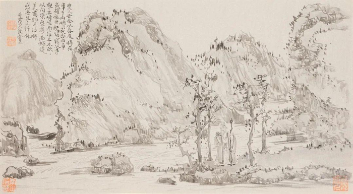 “图真”和“气化论”乃是荆浩的核心观点。荆浩提出“度物象而取其真”,意指穷尽经验万物之名相而究其真。“不可执华为实”,物像的华彩即外在的形式与内在的实质不是一回事,分属两个层面,否定形式意义的唯一性。而是要把握其中的虚实之度,得其法,方可得真。“似者得其形,遗其气,真者,气质俱胜”。气不可能停留在形式层面,是生化万物的关系总和,“真”具有宇宙生化结构和质料实在的双重意义。“气质俱胜”,即是“质有而趣灵”(宗炳),气和趣都是依附在质之上的,通过华(画)来表现,而又不可执于华。