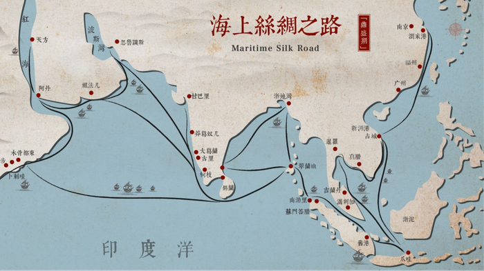 宋元时期海上丝绸之路(受访者供图)例如在南越王墓和南越国公署遗址被发现后,广州在海上丝绸之路所处的地位或重要性发生了变化。在南越王墓和后来的广州汉墓中,发现了许多中国与外界交流的元素,这些元素证明了广州作为当时的出海港或者始发港,在东西方文化交流中所发挥的重要作用。