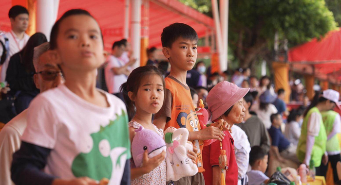 现场观赛的小朋友“每年就盼着这天,比过年还热闹!这是我们望牛墩人自己的节日,是刻在骨子里的记忆!”一位现场观赛的市民说道。龙舟竞渡活动作为望牛墩最隆重和热闹的文体活动之一,不仅为市民和游客奉上了一场精彩纷呈的民俗文化盛宴,更是对数百年龙舟文脉的一次生动传承与创新表达,展现水乡望牛墩的独特活力与传统魅力在新时代的勃勃生机。