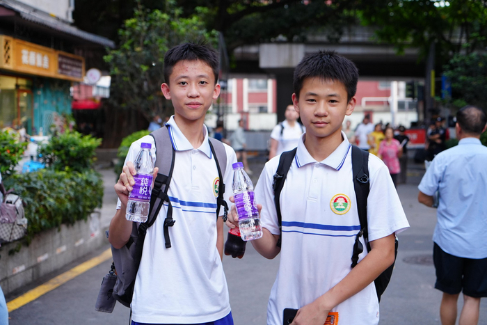 6月9日下午,随着最后一科考试结束铃声响起,华南师范大学附属中学、广州市执信中学、广东广雅中学、广州市第六中学和广州第一一三中学等考点外,不少考生刚走出考场,就收到了工作人员递上的纯悦水和寓意“高分必达”的芬达饮料,为炎炎夏日增添了一份清爽与鼓励。
