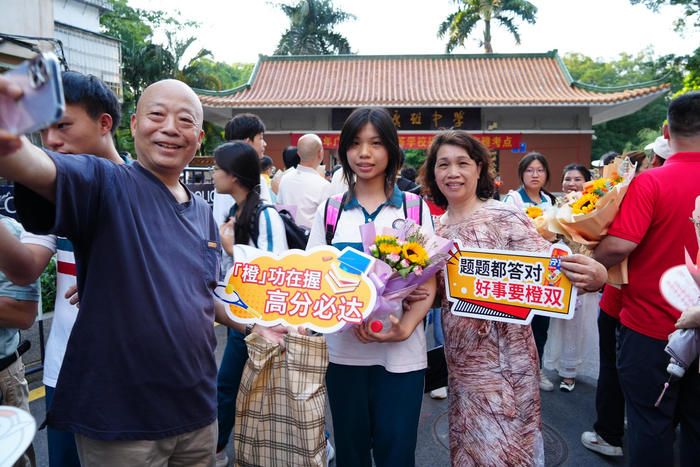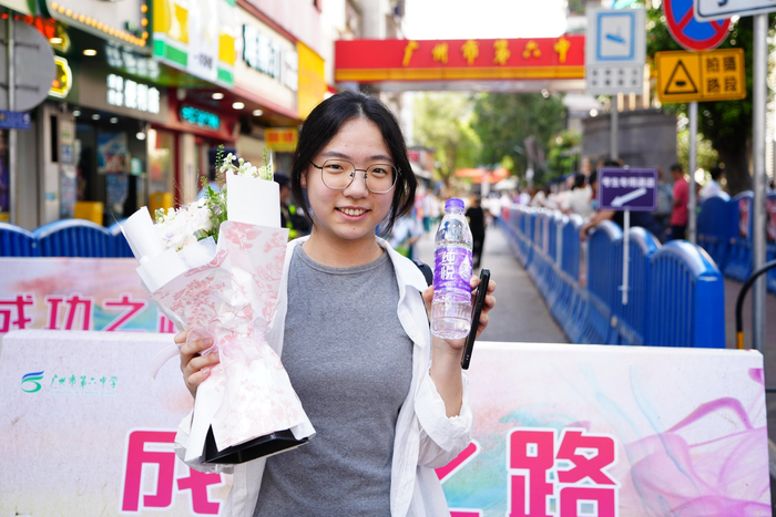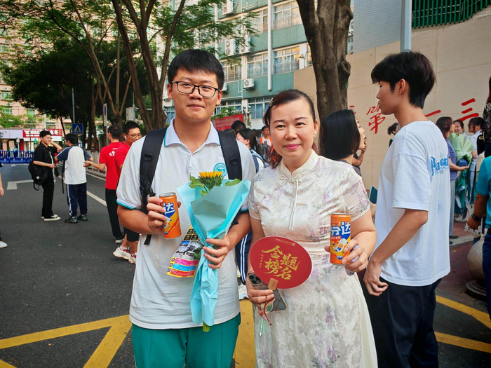 除了送上饮品,工作人员还特意为考生们拍下照片,记录他们高考结束后的青春笑容。许多考生手举饮料,在考场外与家人、朋友合影,定格这一人生重要时刻。“没想到刚考完就收到这样的祝福,特别惊喜。”执信中学考点外,一位考生笑着说道。