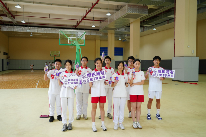 早在高考前,该企业就已启动公益行动。5月30日,广东实验中学、广州中学、广雅中学的考生们便提前收到了纯悦饮用水,为紧张的备考送去一份清凉。学生们手举“超常发挥·好运满分”“厚积薄发·‘悦’享未来”的加油板,在镜头前留下高中末尾的青春时刻。