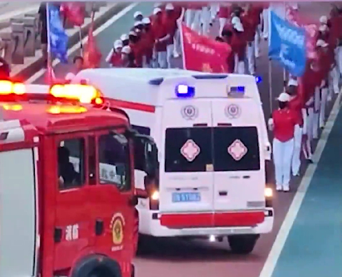 发布视频的网友表示,当时三辆车是去执勤,非紧急任务。双方僵持一两分钟,最后各让一步,救护车靠边腾地,老年徒步团列队出发。