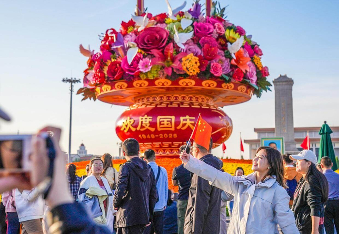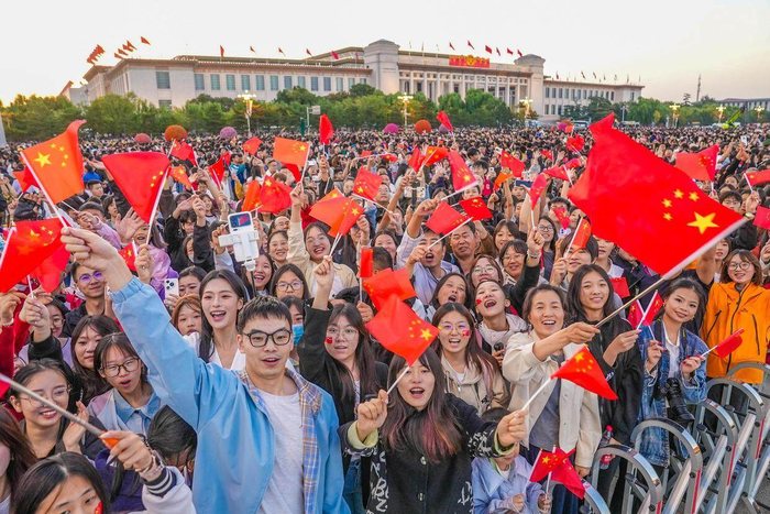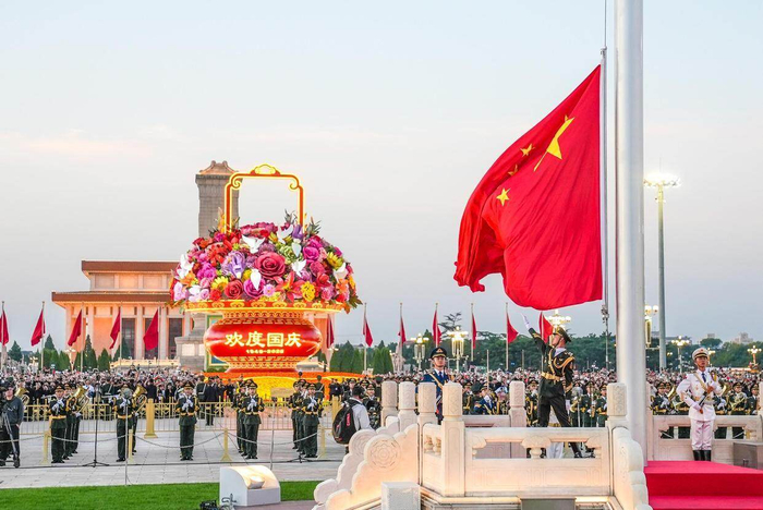 10月1日国庆节清晨,来自全国各地的12.1万名各界群众会聚在天安门广场,观看隆重的升国旗仪式,共同庆祝中华人民共和国成立76周年。大家齐唱国歌,共同见证五星红旗冉冉升起。