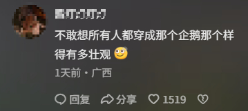 还有网友表示,不敢想象所有人都穿着那个企鹅的样子会多壮观。
