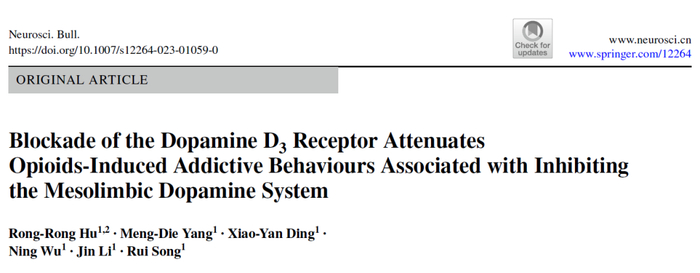关键词:阿片类药物使用障碍;D3受体;多巴胺;自身给药;条件性位置偏爱
