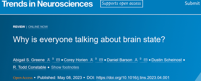 Greene, Abigail S et al. “Why is everyone talking about brain state?.” Trends in neurosciences, S0166-2236(23)00101-7. 8 May. 2023, doi:10.1016/j.tins.2023.04.001