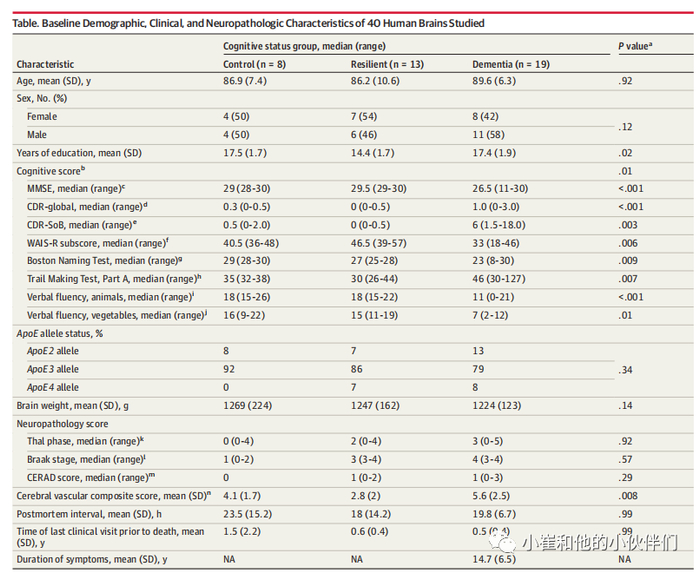表.研究40例人脑的基线人口统计学、临床和神经病理学特征