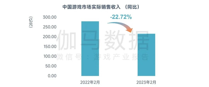 智通财经APP获悉,3月22日,伽马数据发布《2023年2月游戏产业报告》。报告显示,2023年2月,中国游戏市场规模为216.09亿元,环比下降10.16%,同比下降22.72%。环比下降原因有三:一是二月春节假期结束,活跃用户减少;二是假期结束后游戏内相关活动也随之收尾,用户付费意愿及活跃度均下降;三是二月天数少于一月,用户付费时长减少。而同比下降是由于去年同期正值春节假期,产品普遍表现较佳。